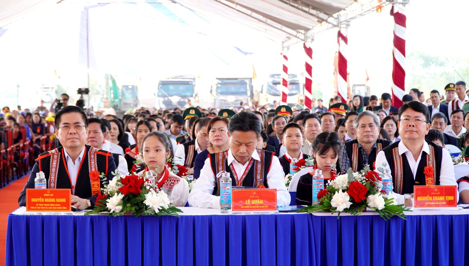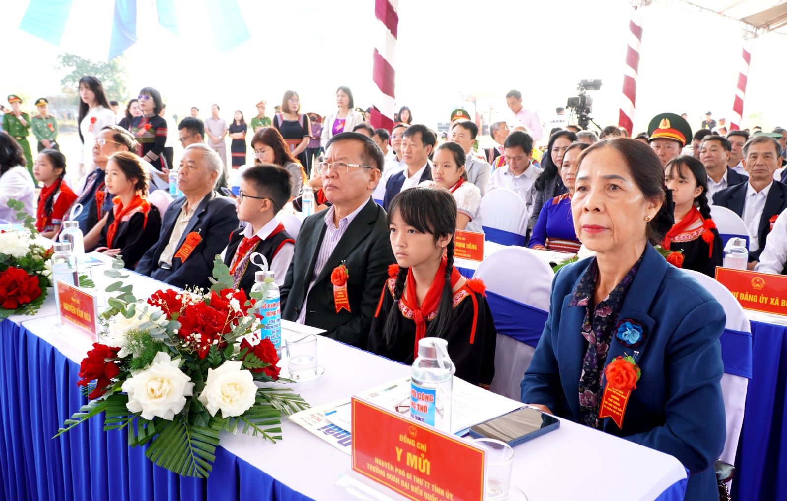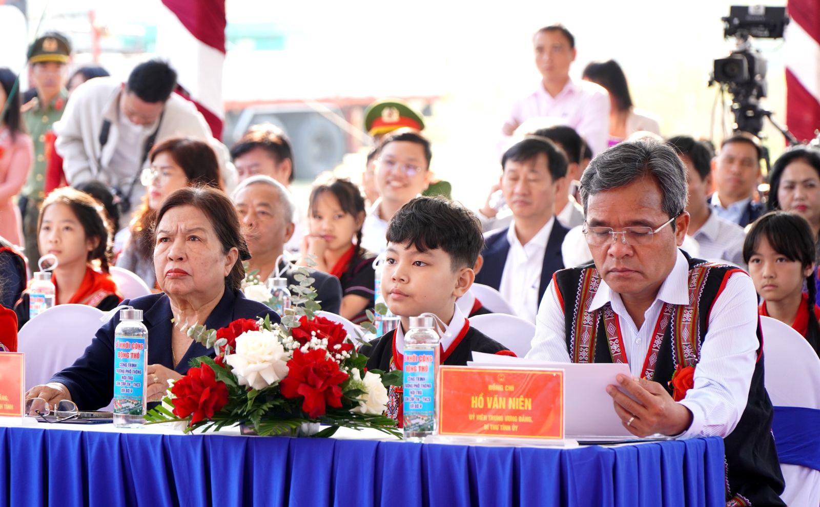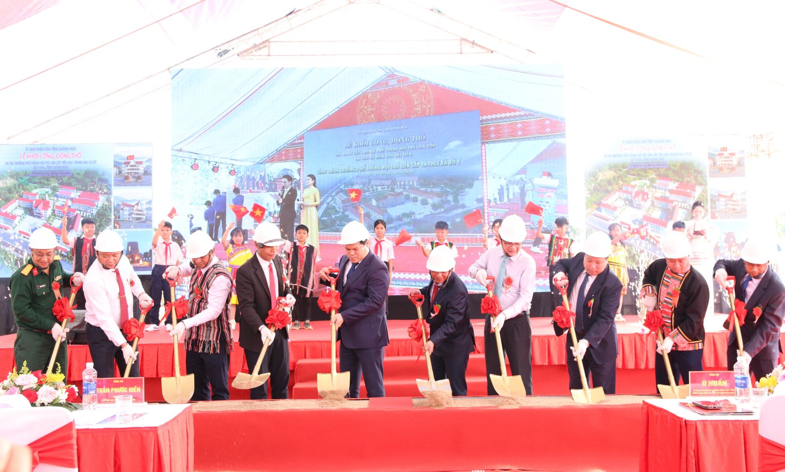 Dự lễ khởi công tại xã Bờ Y, về phía đại biểu Trung ương có Thứ trưởng Bộ Giáo dục và Đào tạo Lê Quân; Thứ trưởng Bộ Tư pháp Nguyễn Thanh Tịnh. Về phía tỉnh Quảng Ngãi có Ủy viên Trung ương Đảng, Bí thư Tỉnh ủy Hồ Văn Niên; Ủy viên Trung ương Đảng, Phó Bí thư Tỉnh ủy, Chủ tịch UBND tỉnh Nguyễn Hoàng Giang; Phó Chủ tịch Thường trực UBND tỉnh Y Ngọc; các đồng chí nguyên lãnh đạo Tỉnh ủy, HĐND, UBND tỉnh qua các thời kỳ; các đồng chí Ủy viên Ban Thường vụ Tỉnh ủy; Thường trực HĐND, UBND, Ủy ban MTTQ Việt Nam tỉnh, Đoàn ĐBQH tỉnh; đại diện các sở, ngành, địa phương cùng đông đảo thầy cô giáo, và học sinh.