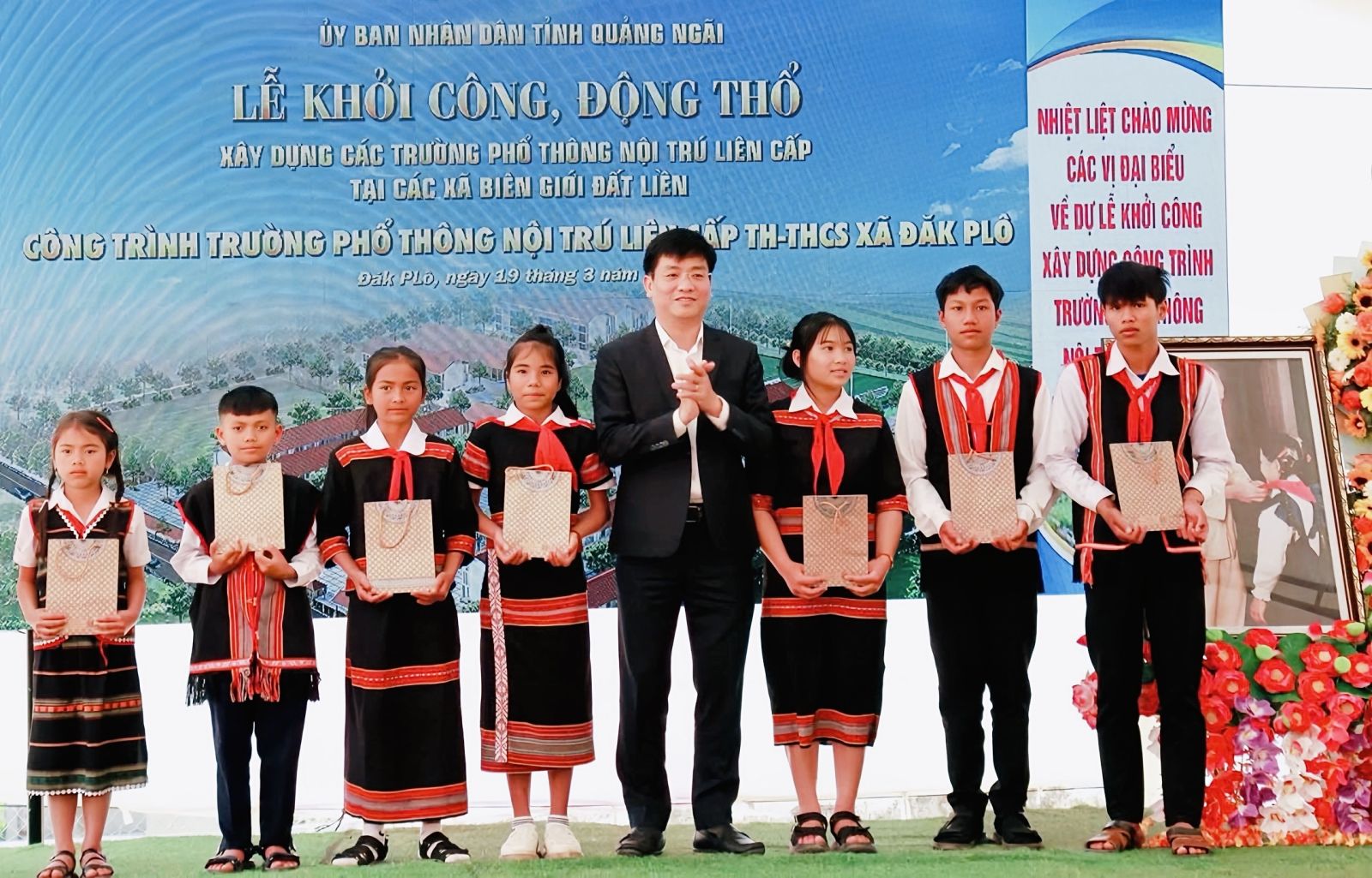 Sáng 19/3, tại 5 xã biên giới đất liền của tỉnh Quảng Ngãi gồm Bờ Y, Ia Đal, Ia Tơi, Đăk Plô và Đăk Long đã đồng loạt diễn ra Lễ khởi công xây dựng các trường phổ thông nội trú liên cấp tiểu học – trung học cơ sở. Đây là những công trình có ý nghĩa quan trọng nhằm nâng cao chất lượng giáo dục vùng biên giới, tạo điều kiện học tập tốt hơn cho học sinh, đặc biệt là con em đồng bào dân tộc thiểu số.