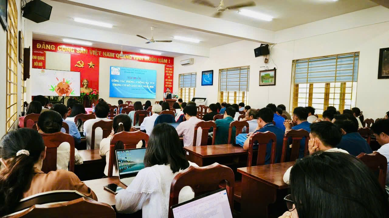 Tại buổi tập huấn, Đại úy Đặng Văn Sàng –Công an tỉnh Quảng Ngãi – đã trực tiếp truyền đạt những kiến thức và kỹ năng nhận diện các loại ma túy mới đang được ngụy trang tinh vi, đồng thời phân tích các phương thức lôi kéo học sinh thường gặp hiện nay. Bên cạnh đó, báo cáo viên cũng hướng dẫn nhà trường quy trình xử lý khi phát hiện hoặc nghi ngờ các tình huống liên quan đến tệ nạn trong học đường.