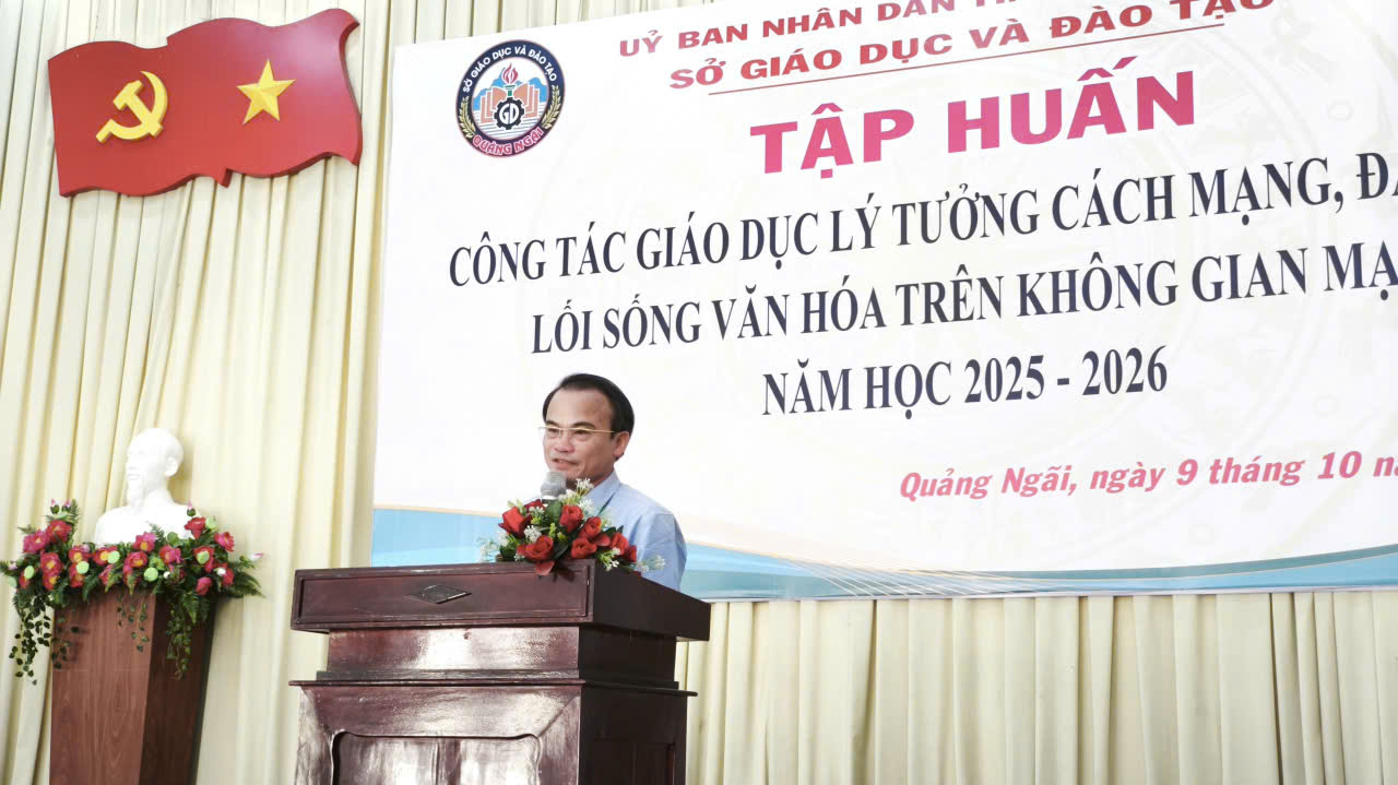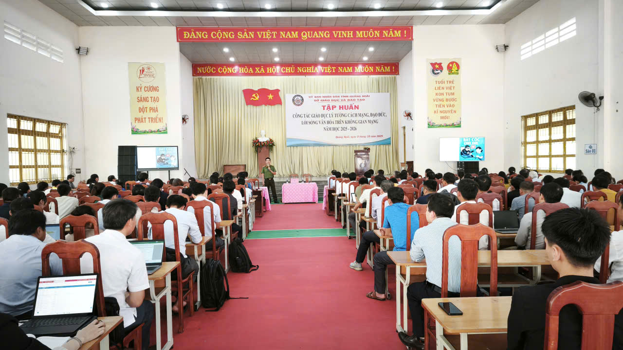 Quảng Ngãi – Trước tình hình tội phạm công nghệ cao và các rủi ro trên không gian mạng ngày càng diễn biến phức tạp, chiều ngày 9/10, Sở Giáo dục và Đào tạo (GDĐT) đã tổ chức Lớp tập huấn đợt 1 về công tác giáo dục lý tưởng cách mạng, đạo đức, lối sống văn hóa trên không gian mạng năm học 2025 – 2026.