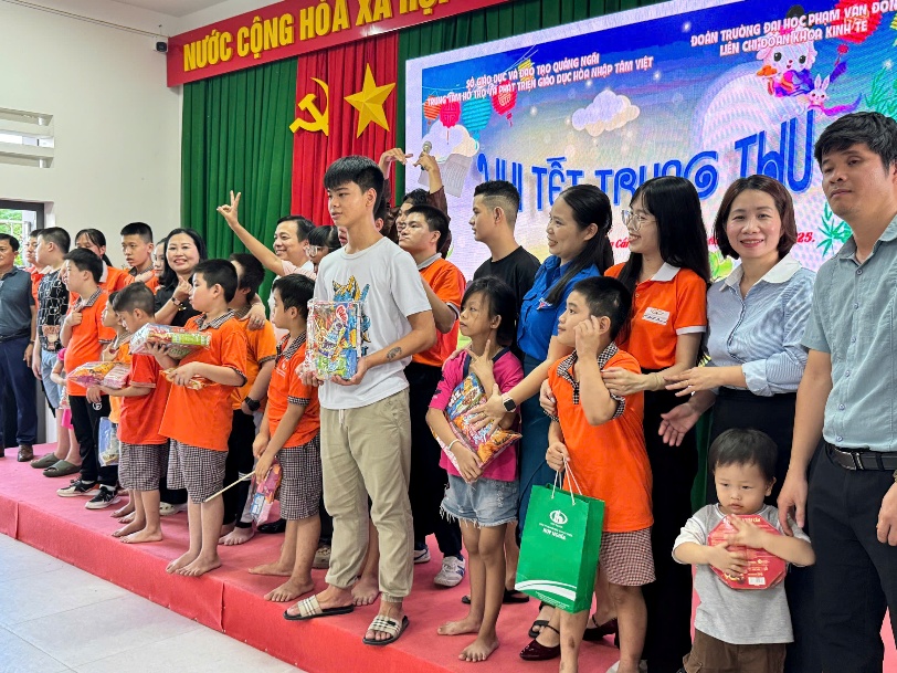 Nhân dịp Tết Trung thu năm 2025, Sở GDĐT Quảng Ngãi đã đến thăm và tặng 340 suất quà cho trẻ em khuyết tật tại Trung tâm Hỗ trợ Phát triển Giáo dục hòa nhập tỉnh, Trung tâm Hỗ trợ và Phát triển Giáo dục Tâm Việt, Trung tâm Nuôi dạy trẻ khuyết tật Võ Hồng Sơn. Đây là hoạt động thường niên của Sở GDĐT, mang ý nghĩa nhân văn sâu sắc, thể hiện sự quan tâm và trách nhiệm của ngành, của xã hội trong việc bảo vệ, chăm sóc và nuôi dạy trẻ khuyết tật. Tại các trung tâm, Sở GDĐT ân cần thăm hỏi, động viên, chia sẻ khó khăn và ghi nhận những nỗ lực của cán bộ, giáo viên, nhân viên trung tâm; tặng quà và chúc các cháu vui Tết Trung thu ấm áp, an toàn, lành mạnh.