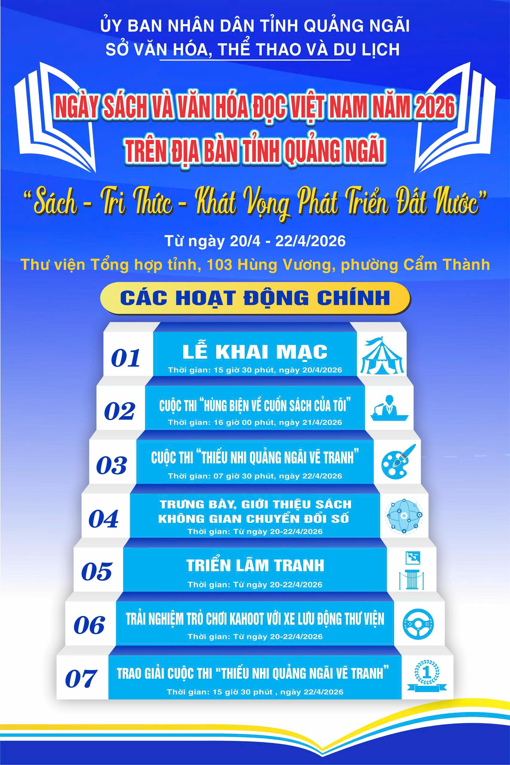 Tuyên truyền Ngày sách và Văn hóa đọc Việt Nam năm 2026 trên địa bàn tỉnh Quảng Ngãi